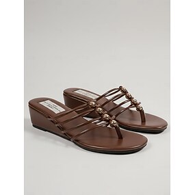 brune flate sandaler med t-rem for kvinner - komfortable sandaler i kunstskinn for hverdagsbruk og utendørsaktiviteter