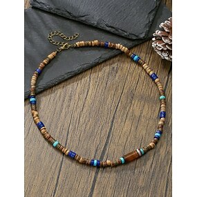 Herre bohemsk halskjede med kokosnøttskall og turkis, blått og brunt lagdelt perleanheng til strandferie, feriestedantrekk, uformelle sommerantrekk og hverdagsbruk