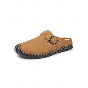 håndsydde tresko i khakifarget materiale for kvinner – justerbare spennesko med lukket tå for turgåing, hagearbeid, reiser og hverdagsbruk.