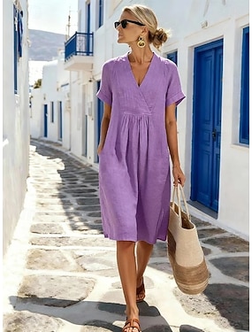 Dame Mini kjole Kjole med A-linje Sommerkjole Ferie Fritid Bohem Daglig Ferie Sommerkjole Normal عادي Halvlange ermer V-hals Blå Lysegrønn Mørkegrønn Lys Lilla Sommer