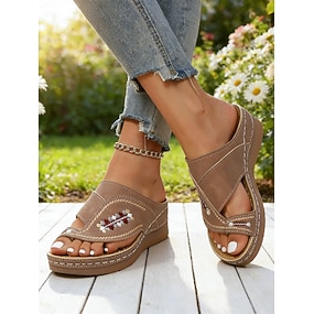 oransje damesandaler med strassspenne i kileform, sommersandaler med justerbar stropp, komfortable, åpne, uformelle sko til daglig bruk og reiser. &hageutflukt
