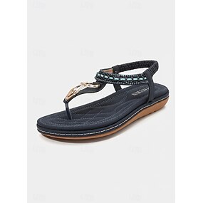 Svarte damesandaler med t-rem – elegante åpne tå med dekorative spenner, ideelle for uformelle utflukter og stranddager