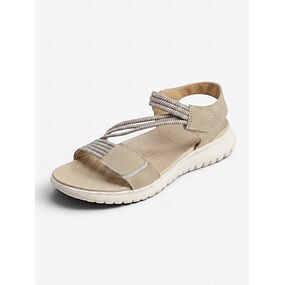 Rosa komfortsandaler med støtte for buen til dame – elastisk kryssreimdesign, lette sportsandaler for sommerturer og reiser &daglig bruk