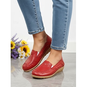 Røde komfortloafers for kvinner – myke, uformelle mokkasinsko med polstret, sklisikker såle, lette tursko for kvinner, perfekte for jobb, reiser og hverdagsbruk