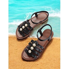 svarte gladiatorsandaler med imitert perlepynt for kvinner – elegant sommersko
