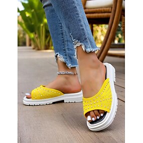 Flyknit-sandaler til dame – stilig gul design med komfortabel fotseng, ideell for komfortable turer og hverdagsbruk om sommeren.