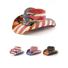 United States 250th Anniversary Menns Strå Western Cowboyhatt med Patriotiske Flaggtrykk Pustende Vevd Fedora Stil i Flere Designer Festival Ferie og Hverdagsbruk