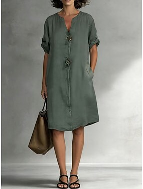 Dame Knelang kjole Imitert bomullslin Elegant Mote Daglig Feriereise Helg Løstsittende Blomstret عادي 3/4 ermer V-hals Svart Hvit Rød Himmelblå Sommer