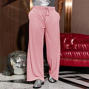 Herre Joggebukse med brede ben Lomme Snorer Elastisk midje Ensfarget Pustende Myk Sport & Utendørs Atletisk Innendørs Gatemote Retro / vintage Løstsittende Svart Rosa Mikroelastisk