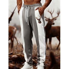 Herre Rådyr Jogger Joggebukse i fleece Elastisk midje med snøring Årgang Fritid utendørs Gate Hverdag Lomme Bukser med rett ben Termisk Vinter 3D-utskrift Brun