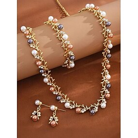 Smykkesett i imitert perlelegering for kvinner – 3-delt sett med halskjede, armbånd og øredobber, perfekt for bryllup og spesielle anledninger