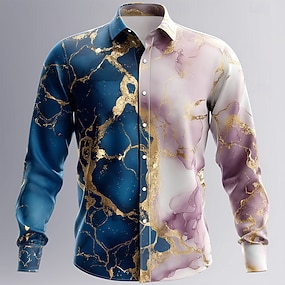 Herre Gradert Marmor Abstrakt flytende kunst Skjorte Skjorte med knapper Langermet Fashion Casual utendørs Daglig Gateklær Vår Høst Aftæpning 3D-utskrift Lin som skjorte Blå Lilla Gull Grønn
