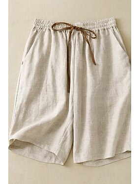 Dame مزيج القطن Imitert bomullslin Shorts Bukser Gatemote Fritid Kort Naturlig عادي Lomme Elastisk snordesign comfy Utendørs Bekvem Gate Fritid / hverdag Aprikos Svart Brun Sommer Normal