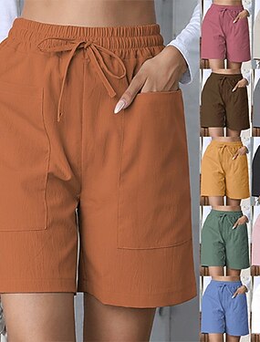 Dame Imitert bomullslin Shorts Bukser Sommershorts Gatemote Fritid Kort Naturlig عادي Lomme Elastisk snordesign Utendørs Bekvem Gate Dagligdagstøy Rød Fersken Aprikos Grå Svart Sommer Normal