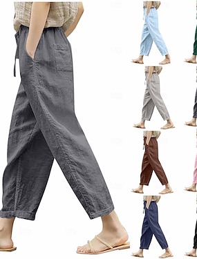 Dame Linbukser i bomull Sommerbukser Avskårede bukser Strandbukser Enkel Fritid Komfort Ankel-lengde Medium Midje Ren farge Lomme Elastisk midje Pustende Mikroelastisk Daglig Hjem Feriereise Bl