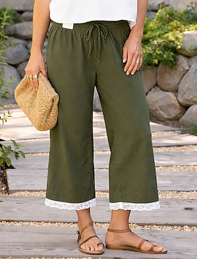 Dame Linbukser i bomull Sommerbukser Ferie Grunnleggende Ankel-lengde Medium Midje Komfort Uelastisk Avslappet Daglig Gateklær Elv Blå Marine Hvit Rosa Sommer Vår