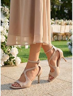 damesko med plateauhæl, peep toe-hæler med kryssremmer, elegante sko til bryllupsgjester i hagen