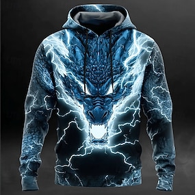 Herre Drage 3D-utskrift Hattetrøje Genser 3D Fantasi Langermet Crew-hals Gave Klubb Gateklær Blå Lilla Brun Grønn Snorer Høst Vinter Designer S M L XL XXL XXXL