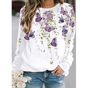 Dame Gensere Trykt mønster Grafisk Sommerfugl Varm Klassisk Fritid Langermet Crew-hals Rund hals Vanlige topper Avslappet Hjem Gate Hvit Vår Høst Vinter
