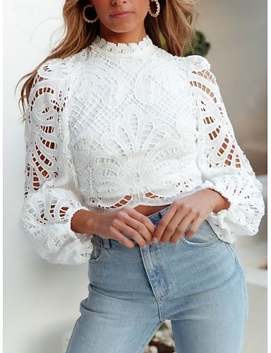 Dame Bluse Blonde Lapper Helfarge Stilfull Grunnleggende Fritid Langermet Høyhalset Crop Tops Daglig Hvit Sommer Vår Høst Vinter