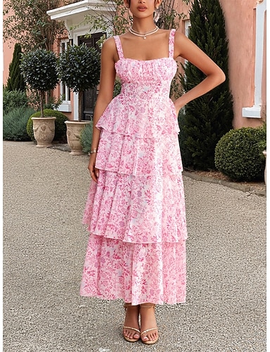 Dame Maxikjole Uformell kjole Chiffonkjoler Slipkjole Elegant Mote Moderne utendørs Feriereise Ut på byen Normal Blomstret Ermeløs stropper Gul Rosa Grønn Sommer Vår