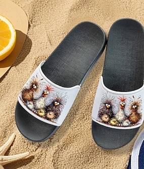 morsomme skyvesandaler med kyllingtrykk for kvinner – komfortable uformelle lysbilder for sommer- og strandtøy