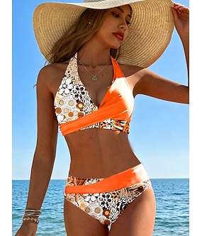 Damers Bikini 2 Dels Badedrakt Cheeky Motetrender Stilfull Blomstergrafikk Uten Ermer Badedrakter