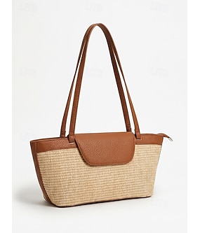 damevevd stråveske, flerfarget håndveske med stor kapasitet, uformell strand- og feriestedveske for ferie, daglig bruk og utendørs fritidsaktiviteter
