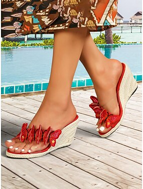 røde sommerfuglsandaler for kvinner – stilige sommerespadrillesklier for strandferier og fritidsklær