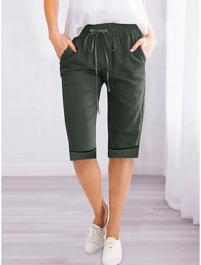 Dame Lin-inspirerte shorts Capri-bukser Linbukser i bomull Shorts Aktiv Enkel Fritid Knelengde Høy Midje عادي Snorer Lomme Elastisk midje Pusteevne Myk Bekvem Mikroelastisk Feriereise Fritid