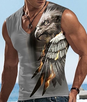 Herre Grafisk Dyr Ørn Vest topp Ermeløs T-skjorte for menn Ermeløs T skjorte 3D-utskrift V-hals Skjorte Designer Fritid Muskel Sport Løp Treningssenter Blå Lilla Brun Vår sommer Klær S M L XL 2XL 3XL