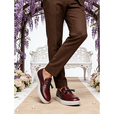 herre maroon slip-on sneakers – avslappet, men stilig bryllupssko for bryllupsgjester