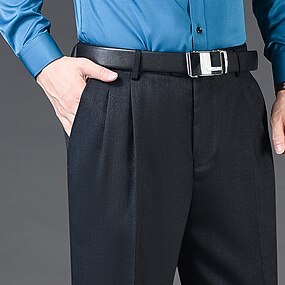 Herre Dressbukser Bukser Plisserte bukser Lomme Plisseringer Rett ben عادي Pustende Myk Bryllup Kontor Virksomhet Elegant og moderne Klassisk Azurblå Svart+Grå Høy Midje Mikroelastisk