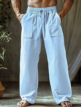 Herre Linbukser Bukser Sommerbukser Posete bukser Strandbukser Snorer Lomme عادي Komfort Pustende Full lengde Daglig Hjem Arbeid Ferie Stilfull Hvit Kakifarget Uelastisk