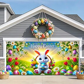 God påske garasjeportbanner, kanin og fargerike egg, religiøs påskebakteppe, garasjeportdekor, utendørs sesongbasert utstilling for påskeferie, familiefeiring