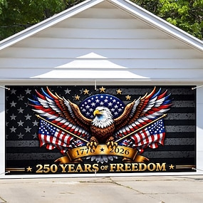 Dekorasjon til garasjeportdeksel i anledning av 250-årsjubileet i USA, bakgrunn med fotografi av ørnen fra 4. juli, Amerika 1776-2026, USA-banner for uavhengighetsdagen, patriotisk dekor