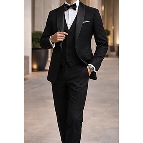 Menn Smokings Festdrakter Skoleball Fest Svart Vår, Høst, Vinter, Sommer Dress Spissjakkeslag Mote Luksus Ensfarget Standard passform 3 deler sett Enkelt Brystet Enn-knapp