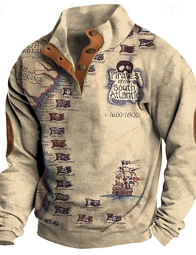 Herre Kart Kompass Hodeskaller Genser Gensere Langermet Genser Henley Grafisk trykk Ferie Ut på byen Festival Spenne Trykt mønster Høst Vinter
