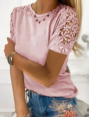 Dame Bluse Uthult عادي Årgang Tropisk Stilfull Kortermet Crew-hals Vanlige topper Daglig Ferie Ut på byen Svart Rosa Lilla Sommer Vår Høst Vinter