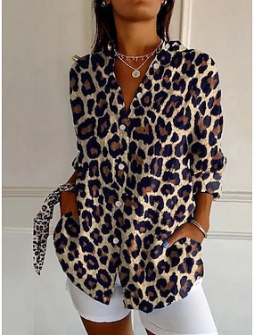 Dame Skjorte Knapper Trykt mønster Leopard Stripet Aktiv Daglig Stilfull Langermet Skjortekrage Vanlige topper Daglig Ferie Hvit Brun Vår Høst