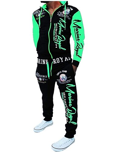 Herre Grafisk Fargeblokk Bokstaver 2stk 3D-genseresett Hattetrøje Joggedress Langermet Lange bukser Med hette Gatemote Designer Fritid Sport & Utendørs Avslappet Sport Glidelås Trykt mønster Vår Høst