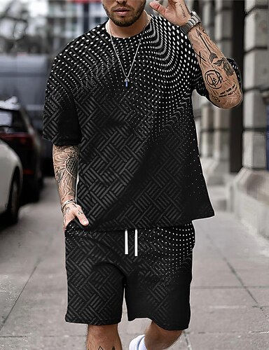 Herre Grafisk Fargeblokk 2stk T-skjorter sett Shorts og T-skjorte sett T-skjorte antrekk Kortermet Crew-hals Designer Fritid Bekvem utendørs Feriereise Daglig 3D-utskrift 2 deler Vår sommer Svart
