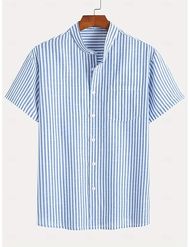 Herre Skjorte Linskjorte Sommerskjorte Strandskjorte Vertikale striper Avslappet Daglig Blå Rosa Kortermet Kinesisk Krave Sommer Vår Klær