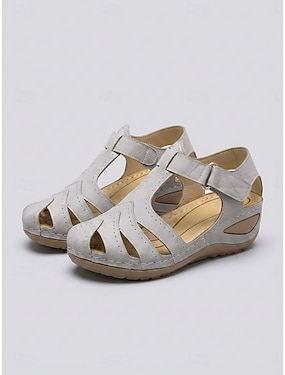 oransje damesandaler med lukket tå og borrelås – lette, polstrede romerske sandaler for reiser, utendørs turer og hageturer &daglig bruk