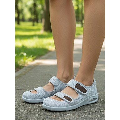 Dame Avslappet Daglig Innendørs Flat hæl Rund Tå Sportslig Fritid Komfort Netting Nylonteip Svart Blå Grå