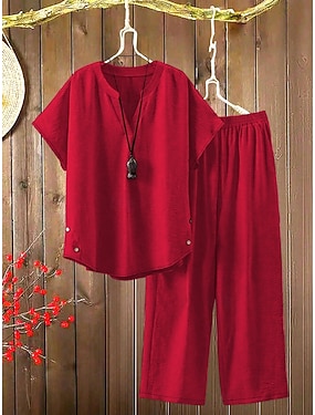Kvinnenes To Delt Sett Lin Lignende Bukser Sett Bolero Topp 3/4 Lengde Erme V Utsnitt Blomster Grafisk Dyretrykk Daglig Stilig Uformell Daglig Strand Blå Gul Rosa Sommer Vanlig Passform