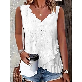 Dame Teksturbluse Øyetopp Pointelle-t-skjorte Singleter Drapering Snørehull Helfarge Stilfull Fritid Ermeløs V-hals Vanlige topper Avslappet Daglig Strand Blå Hvit Gul Rosa Grønn Sommer Vår