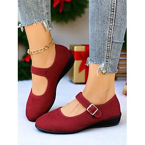 Røde Mary Jane-sko til dame med justerbar spenne og komfortabel sklisikker såle, fritidsklær og festlige juleantrekk