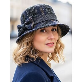 Damelue i tykk polyesterrute med sløyfedetaljer, tilgjengelig i flere farger – perfekt for høst- og vintermote