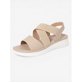 Rosa komfortsandaler med støtte for buen til dame – elastisk kryssreimdesign, lette sportsandaler for sommerturer og reiser &daglig bruk